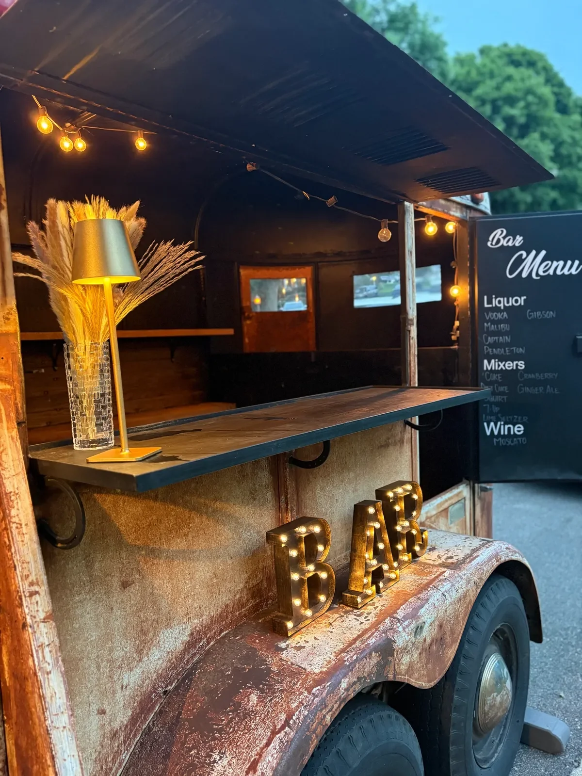 We can serve beer, wine, and seltzers from the mobile bar.